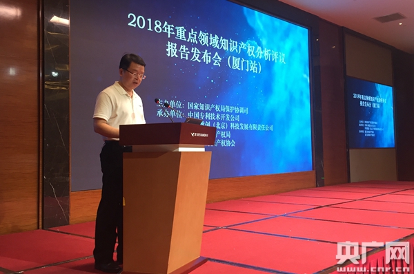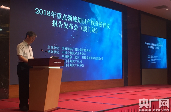央廣網(wǎng)廈門8月2日消息(記者呂貝娜)知識(shí)產(chǎn)權(quán)是創(chuàng)新競(jìng)爭力。開展知識(shí)產(chǎn)權(quán)分析評(píng)議,既是保障產(chǎn)業(yè)安全、服務(wù)產(chǎn)業(yè)發(fā)展的有效方式,也是支撐創(chuàng)新驅(qū)動(dòng)、推動(dòng)強(qiáng)國建設(shè)的具體舉措之一。8月2日,2018年重點(diǎn)領(lǐng)域知識(shí)產(chǎn)權(quán)分析評(píng)議報(bào)告發(fā)布會(huì)首站在廈門舉行,圍繞信息技術(shù)領(lǐng)域發(fā)布相關(guān)產(chǎn)業(yè)的知識(shí)產(chǎn)權(quán)分析評(píng)議報(bào)告。本次發(fā)布會(huì)由國家知識(shí)產(chǎn)權(quán)局保護(hù)協(xié)調(diào)司主辦,中國專利技術(shù)開發(fā)公司、華智數(shù)創(chuàng)(北京)科技發(fā)展有限責(zé)任公司承辦,廈門知識(shí)產(chǎn)權(quán)局、廈門知識(shí)產(chǎn)權(quán)協(xié)會(huì)協(xié)辦,來自國家知識(shí)產(chǎn)權(quán)局及相關(guān)單位、廈門市知識(shí)產(chǎn)權(quán)局、各企事業(yè)單位、高校、科研院所和知識(shí)產(chǎn)權(quán)服務(wù)機(jī)構(gòu)的代表200余人參加了會(huì)議。