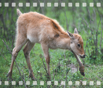 洞庭湖濕地生態(tài)環(huán)境不斷改善,目前洞庭湖的自然野化麋鹿已達(dá)140多頭(5月23日攝)。新華社記者 李 尕?cái)z
