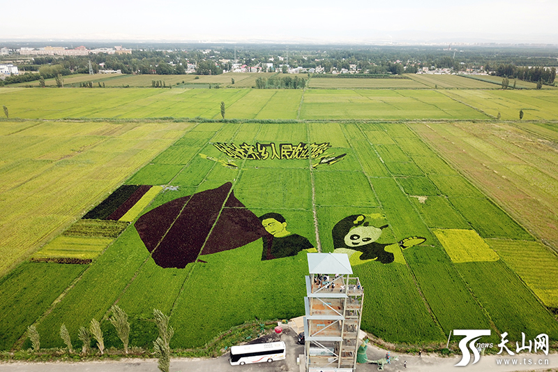 天山網(wǎng)訊(記者趙敏 楊運鵬攝影報道)田里種出畫,這不是3D電影特效!這是新疆伊犁哈薩克自治州察布查爾錫伯自治縣納達(dá)齊牛錄鄉(xiāng)的3D稻田畫。