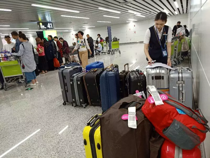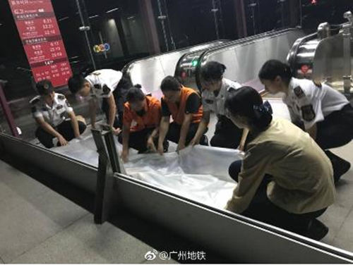 ▲臺(tái)風(fēng)來臨前,地鐵乘務(wù)員正在為地鐵站做好防汛工作。