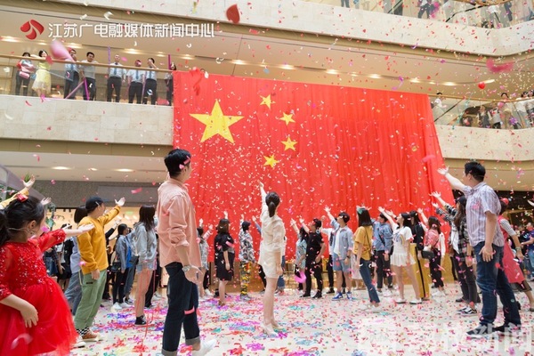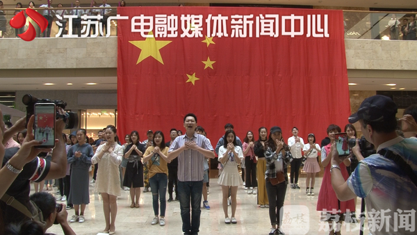 “我愛你中國,親愛的母親,我為你流淚,也為你自豪……”在南京德基廣場一樓,隨著清澈的童聲在人群中響起,來自南京各高校的年輕人,唱著歌從四面八方的人群中緩緩走出,唱起《我愛你,中國》的溫暖旋律。