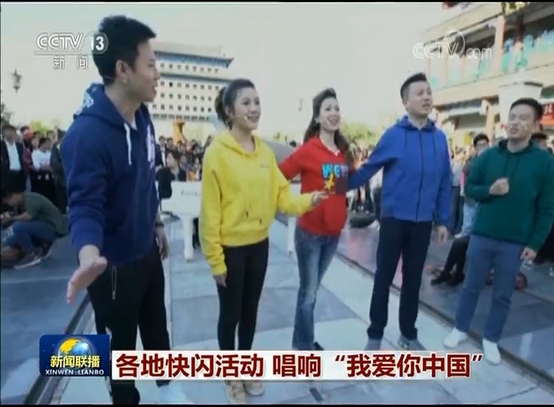 央視網(wǎng)消息(新聞聯(lián)播):國(guó)慶長(zhǎng)假期間,各地在商場(chǎng)、工地、旅游景點(diǎn)等多個(gè)地方推出了“我愛(ài)你中國(guó)”系列快閃活動(dòng)。意想不到的場(chǎng)景,充滿深情的歌聲,點(diǎn)燃起人們的愛(ài)國(guó)熱情,歡樂(lè)祥和、喜慶熱烈的國(guó)慶氛圍撲面而來(lái)。