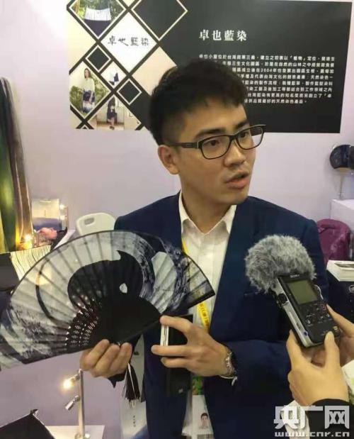 卓也藍(lán)染的營銷經(jīng)理李鈺翔接受采訪。 (央廣網(wǎng)記者 杜蘇閩 攝)