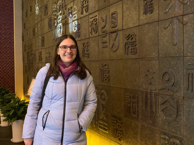 中國日報網(wǎng)美籍編輯喬斯林 艾肯伯(Jocelyn Eikenburg)在西安參加“‘一帶一路’這五年”中外學(xué)者交流活動
