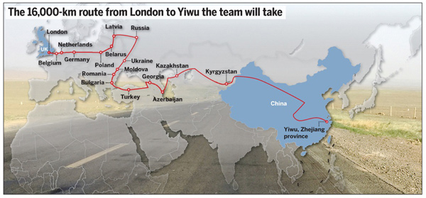 6月1日,史蒂文斯乘坐吉普車離開倫敦,踏上了穿越“一帶一路”沿線18個國家的1.6萬公里的旅程。