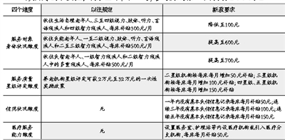 在補貼標準方面,機構(gòu)收住失能老年人、失智、殘障老年人的補貼標準均有所提高。市民政局相關(guān)負責人強調(diào),本次針對機構(gòu)收住失智老年人的補貼從原來每床每月500元提高到700元,這也傳遞出一個信號:政府鼓勵養(yǎng)老機構(gòu)收住失能失智老年人,今后將會有更多的養(yǎng)老機構(gòu)愿意涉足這一個專業(yè)性要求較高的領(lǐng)域,從而幫助解決家庭在失智老人照顧方面的困境。