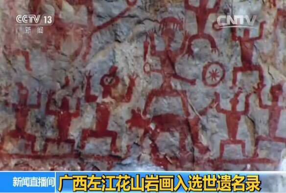 花山巖畫局部截圖。(圖片來源:央視網(wǎng))