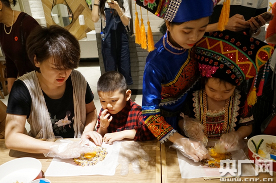 漢族和壯族小朋友們一起制作五色糯米飯。(圖片來源:央廣網(wǎng))