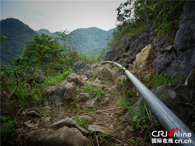 “幸福泉”工程鋪就的水管,用來將山泉水引到廣西河池市大化瑤族自治縣板升鄉(xiāng)八好小學(xué)。(圖片來源:國際在線)