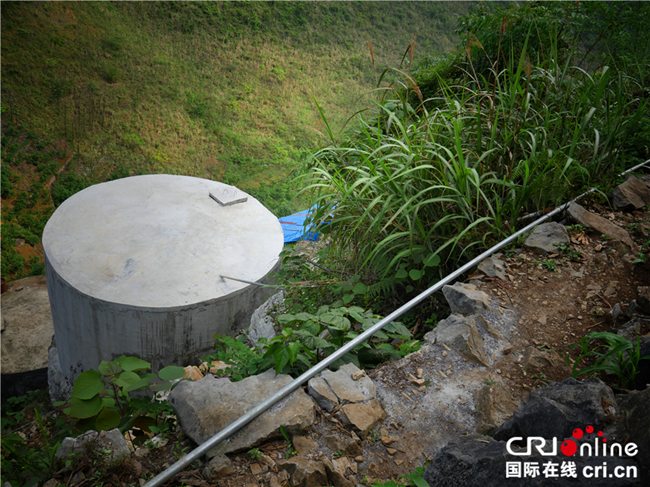 “幸福泉”沿線分流到的一處村民家庭水柜,雨季的時候泉水充足,他們可以和學(xué)校同時使用山泉水。(圖片來源:國際在線)