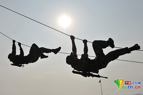 武警深圳支隊官兵組織反恐分隊進行攀登突擊訓練,為圓滿完成各項任務提供有力保障。武警廣東總隊深圳支隊供圖
