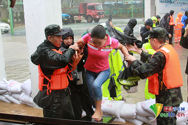 2018年9月,第22號超級臺風“山竹”襲擊深圳市。武警深圳支隊派出救援官兵轉移受困群眾。武警廣東總隊深圳支隊供圖
