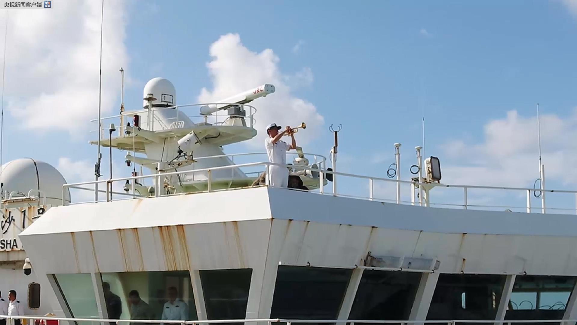 這時,甲板上突然響起了一陣溫暖的旋律,人們紛紛抬起頭,尋找聲音的來源。原來,甲板上、陸地上,91892部隊軍樂隊帥氣瀟灑的小哥哥、英姿颯爽的小姐姐們,正用手中的小號、長笛、小軍鼓、镲等十余種樂器共同奏響《我和我的祖國》優(yōu)美而富有歌唱性的旋律。軍樂隊激動人心的演奏,回蕩在碧海藍天之間,喚醒三沙靜謐的清晨,吸引現(xiàn)場人群紛紛停下腳步,駐足觀看。