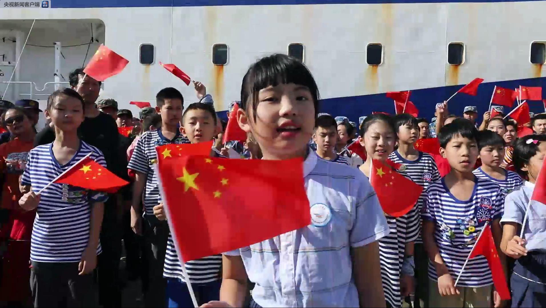 △三沙市永興學(xué)校小學(xué)生胡楚涵和同學(xué)們的清澈童聲打動人心