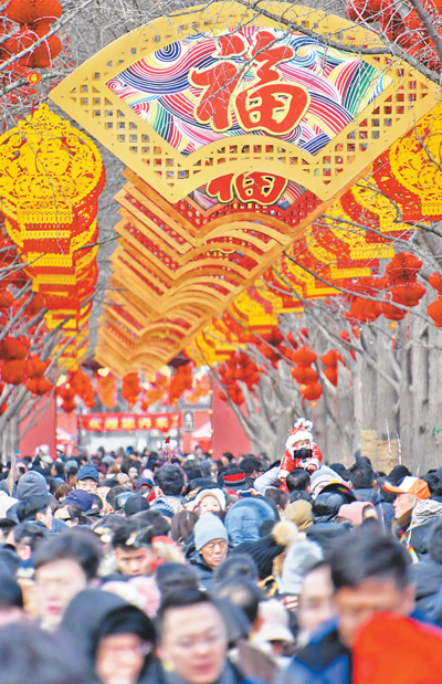 2月9日,人們參加地壇春節(jié)文化廟會。春節(jié)期間,大批市民和游客來到北京市東城區(qū)地壇公園參加地壇春節(jié)文化廟會,感受傳統(tǒng)文化,體驗濃濃年味。