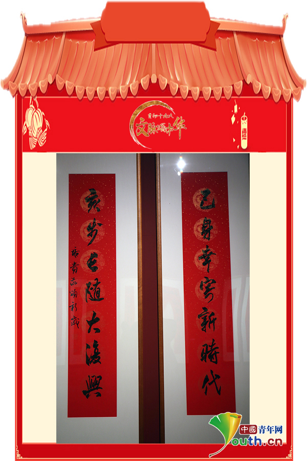 楹聯(lián)“己身幸寄新時代,亥步長隨大復(fù)興”。中國青年網(wǎng)記者葉婉瑩 攝