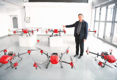 2月2日,工作人員在黑龍江省樺南縣水稻分子育種研發(fā)中心介紹無人機飛防情況。新華社記者 王建威攝