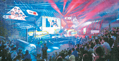 2018年,在亞運會電競項目《王者榮耀國際版(AOV)》賽場上,中國隊對陣泰國隊。新華社記者 張金加攝