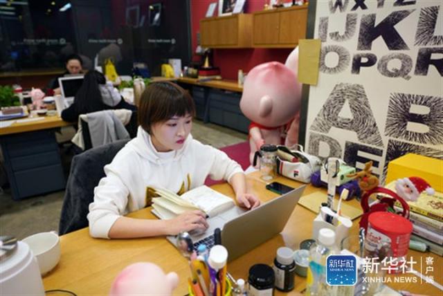 ↑2月21日,張世玉(前)在位于北京光華路SOHO的公司工作。