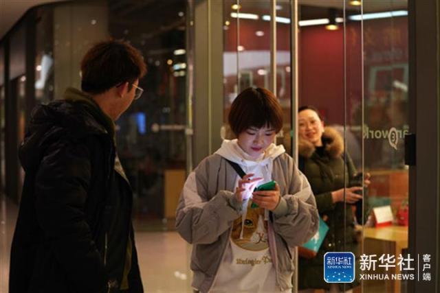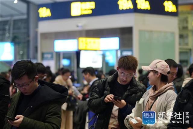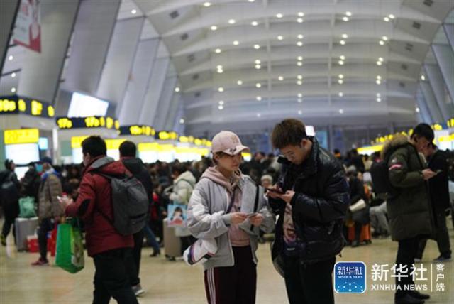 ↑2月22日晚,張世玉(前右一)與呂新(前右二)在北京南站等候回天津的火車。