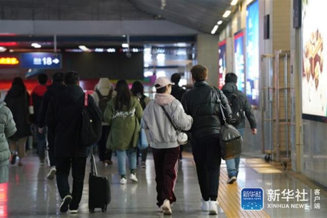 ↑2月22日晚,張世玉(前左)與呂新(前右)在北京南站等候回天津的火車。