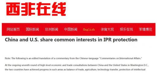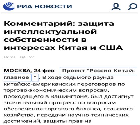 央視網(wǎng)消息:中央廣播電視總臺“國際銳評”2月24日刊播題為《加強(qiáng)知識產(chǎn)權(quán)保護(hù) 中美有三大“利益交匯點(diǎn)”》的文章。眾多境外媒體和網(wǎng)站轉(zhuǎn)發(fā)。