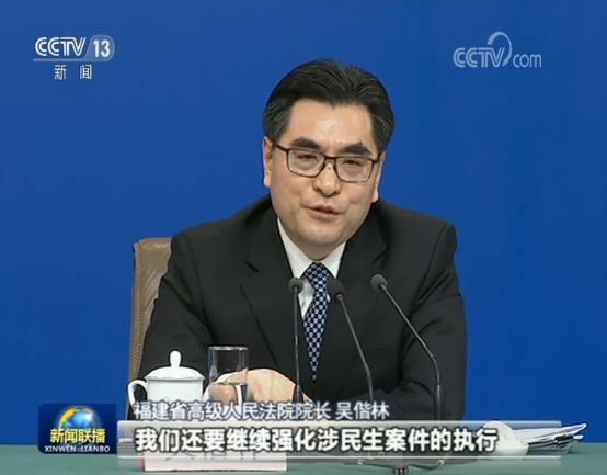 農(nóng)民工討薪等涉民生執(zhí)行效果如何,福建省高級(jí)人民法院院長吳偕林表示,民生就是民心,我們還要繼續(xù)強(qiáng)化涉民生案件的執(zhí)行,讓更多的真金白銀落入人民群眾的口袋。