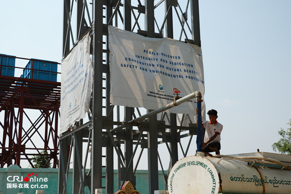 由中緬油氣管道項(xiàng)目援建的水塔為當(dāng)?shù)厥忻窠鉀Q用水問(wèn)題(洪荃詮 攝)