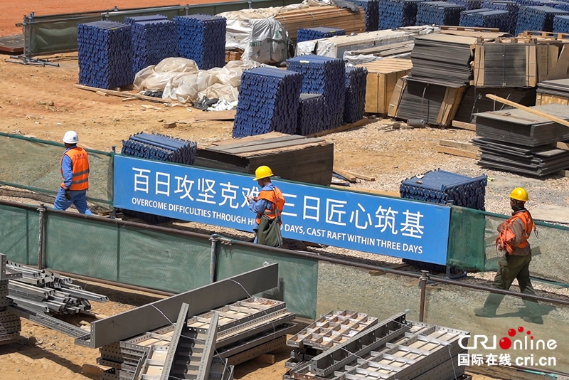 工地上各種彰顯中國精神的標(biāo)語口號隨處可見