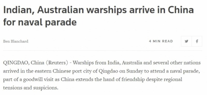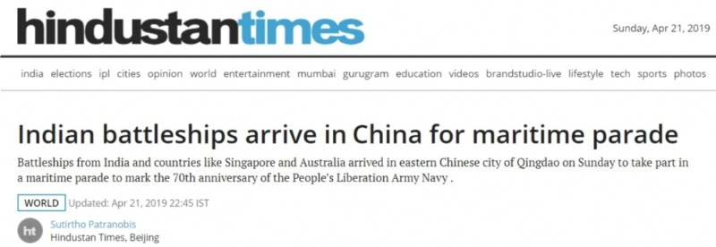 印度駐華使館稱,印度軍艦參加中國人民解放軍海軍閱兵式,是深化印中兩軍關系的努力之一,符合兩國領導人的戰(zhàn)略指導。預計本次活動將進一步推進兩軍增進互信和理解的進程。