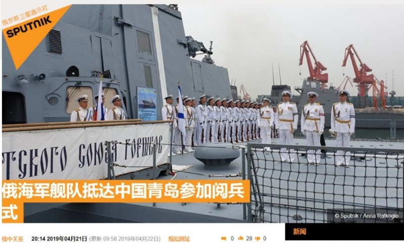 俄羅斯衛(wèi)星通訊社21日報道,俄羅斯海軍北方艦隊四艘軍艦組成的艦隊支隊21日早上抵達中國山東省青島市港口,以參加紀念中國人民解放軍海軍成立70周年的國際閱兵式。