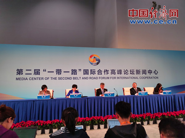 圖為第二屆“一帶一路”國際合作高峰論壇企業(yè)家大會新聞發(fā)布會現(xiàn)場。經(jīng)濟日報-中國經(jīng)濟網(wǎng)記者 張懿攝