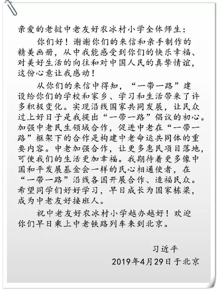 “歡迎你們早日乘上中老鐵路列車來到北京。”習近平主席在回信中也專門作出了回應。