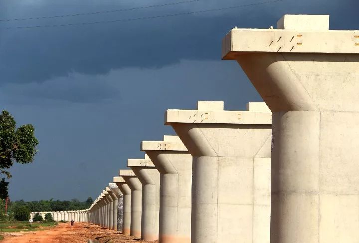 ↑2018年6月14日的老撾萬象楠科內(nèi)河特大橋橋墩。墩身澆筑完成標志著中老鐵路全線最長橋梁主體工程順利完工。 新華社發(fā)