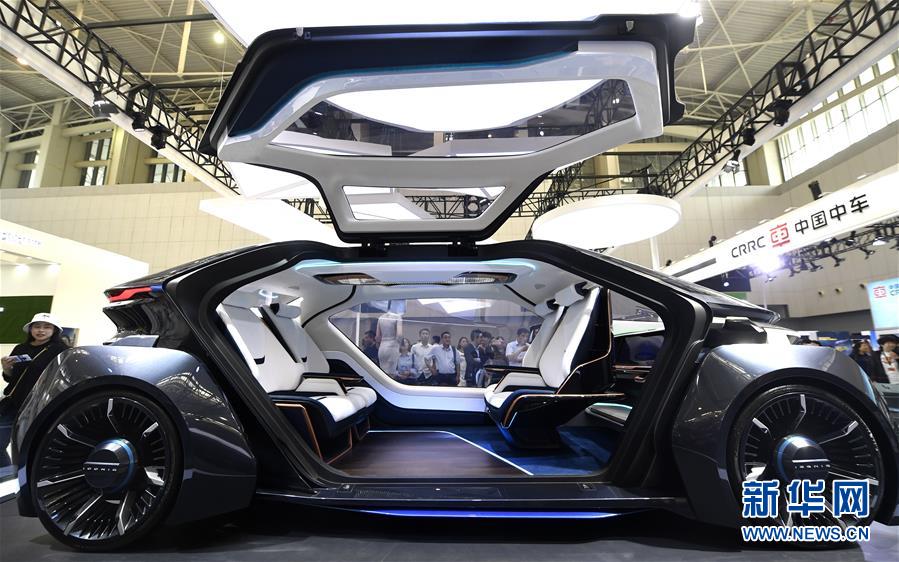 5月16日,觀眾在第三屆世界智能大會(huì)智能科技展上參觀一家企業(yè)展出的概念車。 新華社記者 岳月偉 攝