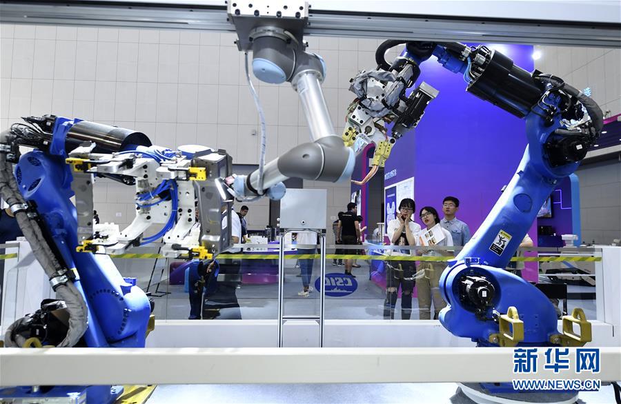 5月16日,在第三屆世界智能大會(huì)智能科技展上,觀眾參觀中船重工第707研究所展出的汽車柔性焊接檢測系統(tǒng)。新華社記者 岳月偉 攝