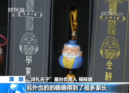 “詩禮夫子”展臺負(fù)責(zé)人 楊桂娟:我們就想讓他(孔子)更親民一些,在我們生活的方方面面都感受得到他,進而通過他了解到優(yōu)秀的傳統(tǒng)文化。我們把歷朝對孔子的畫像進行了提煉,一方面不失真實感,另一方面也得到了一些小朋友、家長和關(guān)注傳統(tǒng)文化、喜歡傳統(tǒng)文化的人士的歡迎。