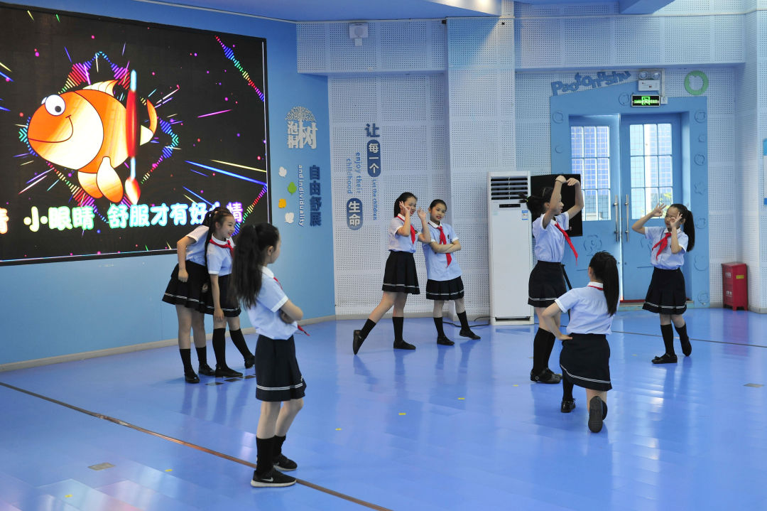 泡桐樹小學(xué)學(xué)生為我們表演《愛眼操》