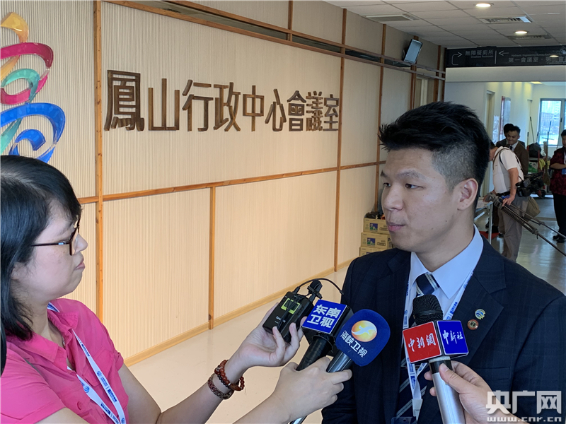 澳門中華青年商會會長譚鎧承接受媒體專訪。(央廣記者 張希達(dá) 攝)
