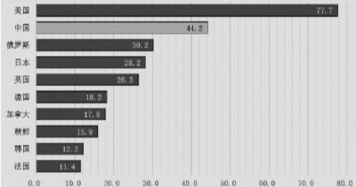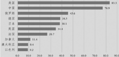 中國公眾心目中的十大世界大國分別是美國、中國、俄羅斯、德國、日本、英國、法國、加拿大、澳大利亞、以色列。而美國公眾心目中的十大世界大國分別是美國、中國、俄羅斯、日本、英國、德國、加拿大、朝鮮、韓國、法國。