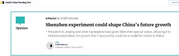 文章最后總結(jié)道,與香港毗鄰的中國(guó)高科技之都,曾經(jīng)是中國(guó)改革開(kāi)放試驗(yàn)田,又將成為一個(gè)新的經(jīng)濟(jì)特區(qū),為中國(guó)其他城市樹(shù)立一個(gè)更大膽改革的榜樣。