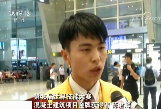 第45屆世界技能大賽混凝土建筑項(xiàng)目金牌獲得者 陳君輝:我們兩個(gè)也是第一次參加這個(gè)比賽,然后我們國(guó)家是第一次參加這個(gè)項(xiàng)目,對(duì)于很多東西,有很多默認(rèn)的潛規(guī)則,那些是我們不了解的,就是在這種情況下,我們?nèi)匀荒軌蚰玫焦谲姡@讓我覺(jué)得非常自豪。