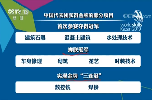 第二方面就是體現(xiàn)了我們國(guó)家在職業(yè)技能發(fā)展全面發(fā)展的能力,我們56個(gè)比賽項(xiàng)目,其中有52個(gè)項(xiàng)目獲獎(jiǎng),獲獎(jiǎng)面達(dá)到了93%,那么六大類比賽我們都有獎(jiǎng)牌,特別是我們過(guò)去的一些短板項(xiàng)目,比如說(shuō)去年連線的時(shí)候白巖松曾經(jīng)問(wèn)我,作為舌尖上的中國(guó),烹飪?yōu)槭裁次覀兂煽?jī)不好,我說(shuō)比賽比的是西餐,但是即使是西餐項(xiàng)目,我們這次也是一路逆襲,從46個(gè)參賽代表隊(duì)中脫穎而出,獲了第三名,十分不易。