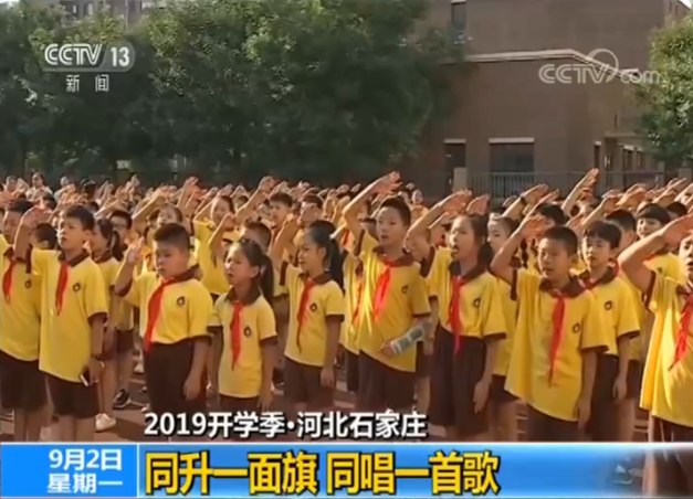 9月1日,河北石家莊1900多所學校共同舉辦了“我和祖國共成長”開學典禮,160多萬名中小學生同升國旗,共唱國歌,在隆重的開學典禮中迎來新學年的第一課。