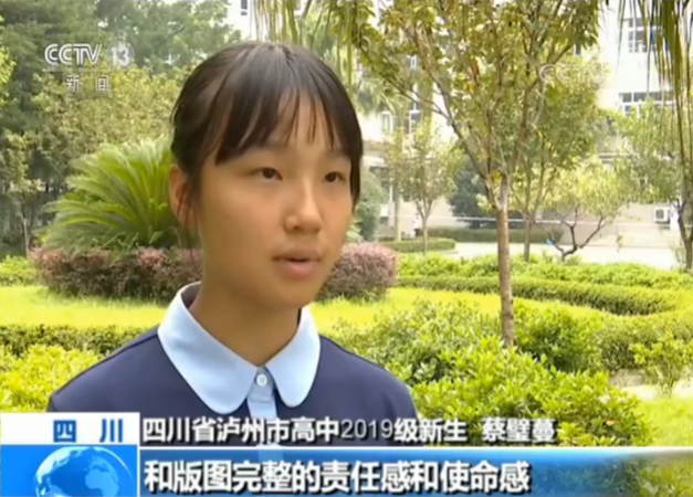 四川省瀘州市高級中學校2019級新生 蔡璧蔓:我們對測繪地理信息和國家版圖知識有了更深入的了解,也增強了我們對國家領土主權完整和版圖完整的責任感和使命感。