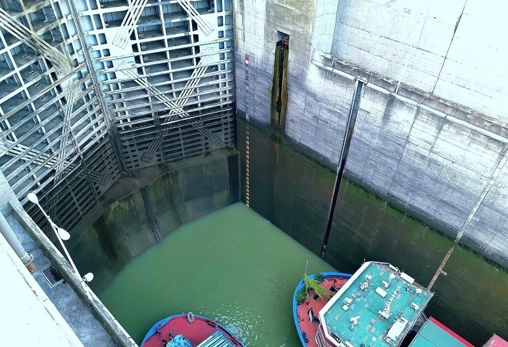 但是,僅用20分鐘,海巡艇就從大壩上游垂直下降100米,進(jìn)入大壩下游航道,整個(gè)過程平穩(wěn)異常。