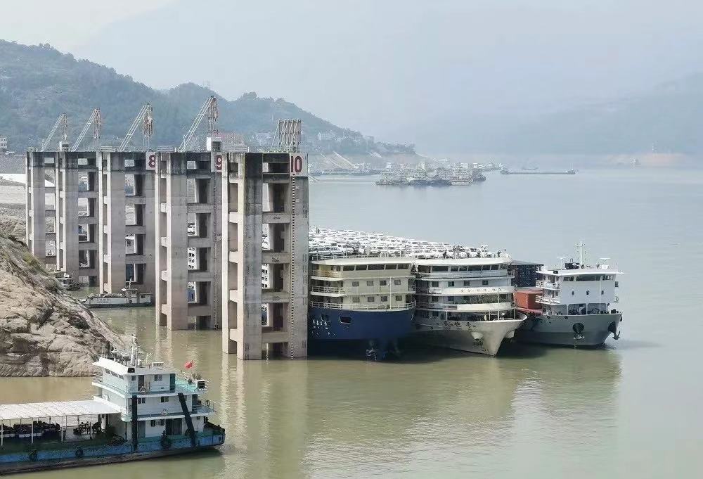 同時(shí),為了突破三峽船閘設(shè)計(jì)負(fù)荷能力的限制,解決過閘較慢的問題,在三峽大壩建設(shè)了雙線五級(jí)船閘,與此同時(shí),世界上規(guī)模最大、技術(shù)難度最高的升船機(jī)建成并投入運(yùn)行。從此,輪船穿過三峽大壩的方式,被形象地比喻成“大船爬樓梯、小船乘電梯”。這一改造,使得三峽船閘的通航能力,大大提升。