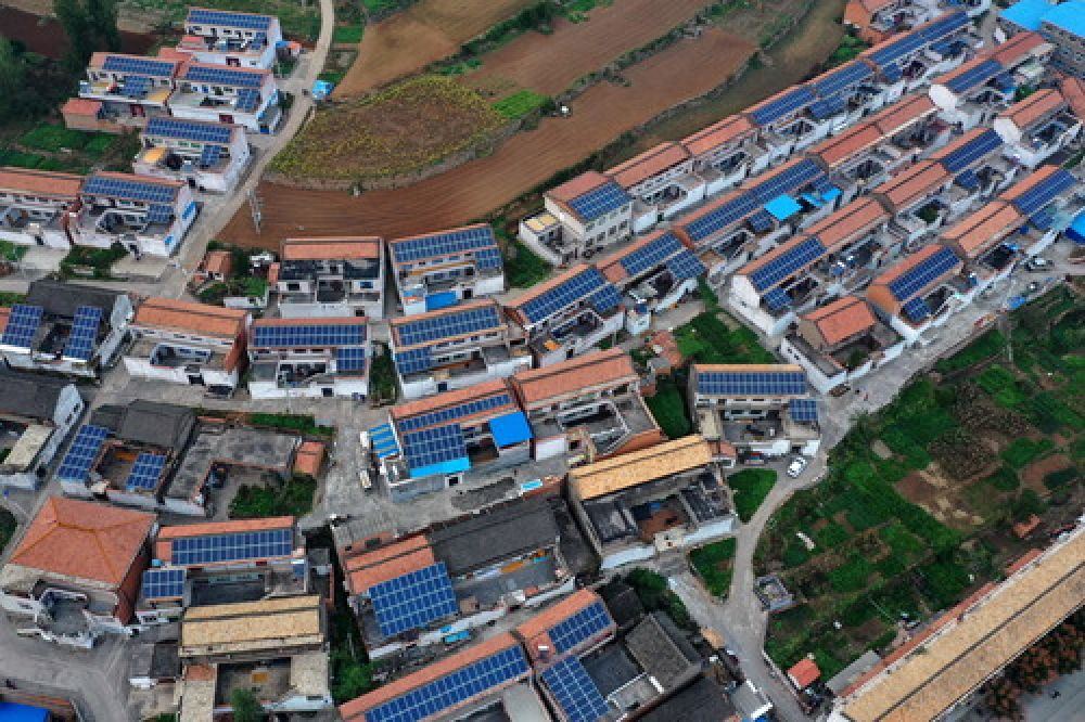 這是10月13日無人機(jī)拍攝的山西省晉城市陵川縣河北鎮(zhèn)河北村的屋頂光伏電站。近年來,山西省晉城市積極探索光伏扶貧模式,推進(jìn)鄉(xiāng)村家庭屋頂光伏惠民工程。晉城市政府與國網(wǎng)山西晉城供電公司共同為211個(gè)村建設(shè)了屋頂光伏電站,當(dāng)?shù)夭捎谩叭娚暇W(wǎng)”模式,將村民屋頂光伏所發(fā)的清潔電能全部并入地方電網(wǎng),發(fā)電上網(wǎng)獲得的收益幫助很多貧困群眾摘下了“窮帽子”。新華社記者 曹陽 攝