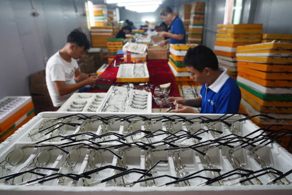 在江西省鷹潭市余江區(qū)平定鄉(xiāng)東腦村世宏光學(xué)扶貧車間,村民在加工一批眼鏡產(chǎn)品(10月12日攝)。近年來,江西省鷹潭市結(jié)合產(chǎn)業(yè)特點(diǎn),引導(dǎo)當(dāng)?shù)厣a(chǎn)實(shí)體“下沉”到村組,讓貧困群眾在家門口就能實(shí)現(xiàn)就業(yè)脫貧。據(jù)了解,全市已建成運(yùn)營“產(chǎn)業(yè)下沉”結(jié)業(yè)扶貧車間88個(gè),吸納就業(yè)2000余人。新華社記者 萬象 攝