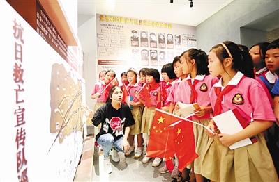 江蘇省連云港市東?h安峰鎮(zhèn)中心小學(xué)組織學(xué)生走進(jìn)縣革命歷史紀(jì)念館,重溫抗戰(zhàn)歷史,感受革命先輩的堅定信仰與革命情懷。張開虎攝/光明圖片